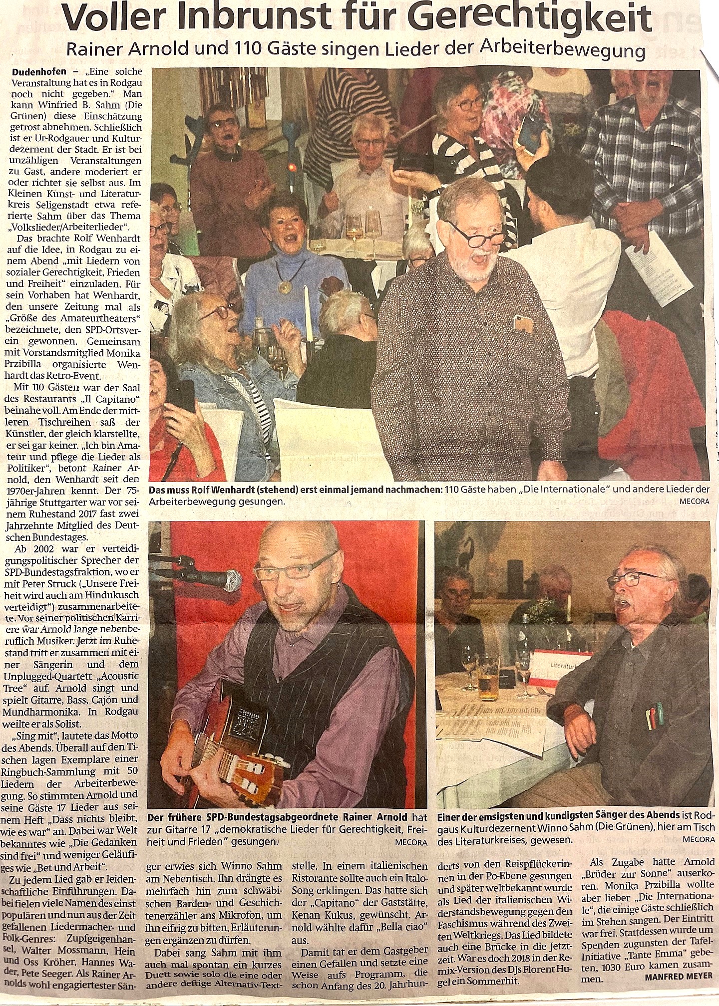 Das gilt nach wie vor, trotzdem – oder gerade weil – wir heute auf über 70 Jahre Frieden und Demokratie zurückschauen können. Deshalb sind unsere politischen Lieder auch keine Folklore, sondern Teil unserer Überzeugung, unseres Bewusstseins. Und sie sind vor allem gemacht zum Mit-singen, zu dem wir Euch ganz herzlich einladen. Rainer Arnold wird auf der Gitarre begleiten und aber auch einiges zu den Hintergründen und Entstehungsgeschichten verschiedener Lieder berichten.